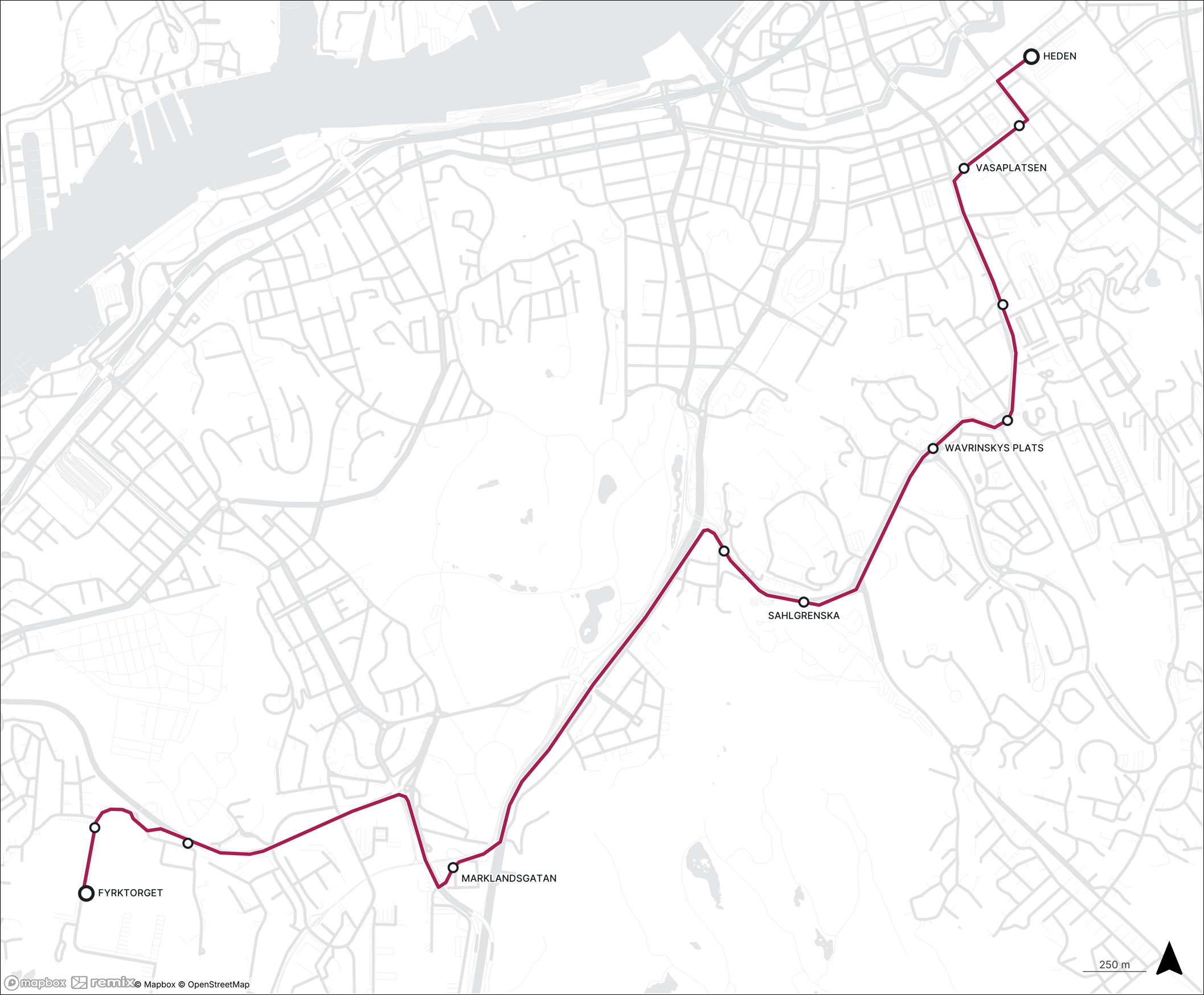 Vi sätter in linje 64 som kör mellan Fyrktorget via Sahlgrenska, Wavrinskys Plats, Chalmers, Kapellplatsen, Vasaplatsen och Heden. Då kan våra resenärer fortfarande komma nära centrum utan byte på vägen och skolelever kan åka direkt från Högsbohöjd till skolor på Guldheden. Linjen kör lika ofta som linje 16 gör idag: i 10- och 15-minuterstrafik.